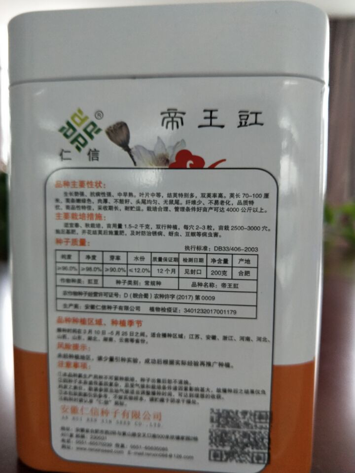 豇豆種子是怕潮濕、怕霉變、怕壓制的,一款“銅墻鐵壁”式的外包裝可以讓它安全完整地抵達消費者手里,而這款帝王豇鐵罐完全能夠勝任,因為其采用的是耐撞性強,抗壓性好的馬口鐵作為原料,其屬性解決了上述“三怕”難題。