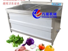 1、本機(jī)采用高壓氣體產(chǎn)生鼓泡震動來清洗果蔬。有效分離果蔬上面粘連的泥沙、雜質(zhì)。