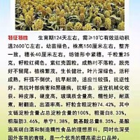 栽培要點 5月上旬播種,畝保苗6000-7000株;施足底肥,拔節(jié)前注意追 肥;出苗后及時定苗,及時鏟趟管理;注意防蟲在蠟熟末期適時收獲。
