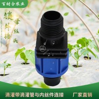 百時(shí)合農(nóng)業(yè)節(jié)水灌溉鎖母外絲接頭,一頭連接20內(nèi)牙管件(如鞍座),另一頭用來連接16滴灌帶、滴灌管