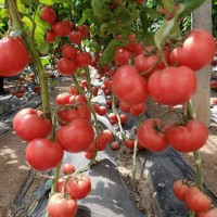 大果型粉果番茄,無限生長(zhǎng)型,抗死棵品種,植株長(zhǎng)勢(shì)旺盛,高抗TY病毒,抗灰葉斑,葉霉病等葉部病害,連續(xù)坐果能力強(qiáng),果色深粉紅,超大果型,單果重280-320克,硬度高,耐貯運(yùn),產(chǎn)量非常高,適合早春秋延越冬保護(hù)地種植。