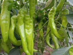 日本引進,早熟,植株長勢旺盛,葉片適中,在低溫下易坐果,果實膨大速度快,節(jié)間較短,分枝力強,在保護地種植,果長24-30cm,果肩寬4-4.5cm。單果重110-150克,果實淺綠色,味辣,柄部稍有皺。連續(xù)結(jié)果能力強,單株最多可連續(xù)結(jié)果70個以上。綜合抗性好,適合春秋拱棚及越冬,冬春溫室及露地栽培。
