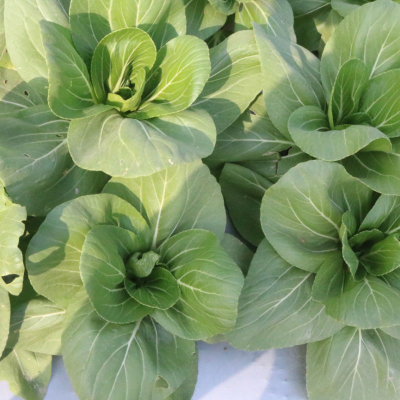 品種主要性狀:大頭束腰,株高28cm,開展度28-30cm,葉面光滑,葉片亮綠色,廣卵圓形,葉柄淺綠色,寬度略凹,成株采收葉片數(shù)22-25片,單株重600-700g。外形優(yōu)美,商品性好,豐產(chǎn)優(yōu),可周年栽培,比“上海青”增產(chǎn)40%左右。優(yōu)勢明顯,生長快,適應(yīng)性強,特耐熱,抗病,耐澇。在伏天病蟲發(fā)生期,受害株率顯著低于其他品種。味清淡略有甜味,纖維少。菜秧栽培,拔節(jié)不明顯。