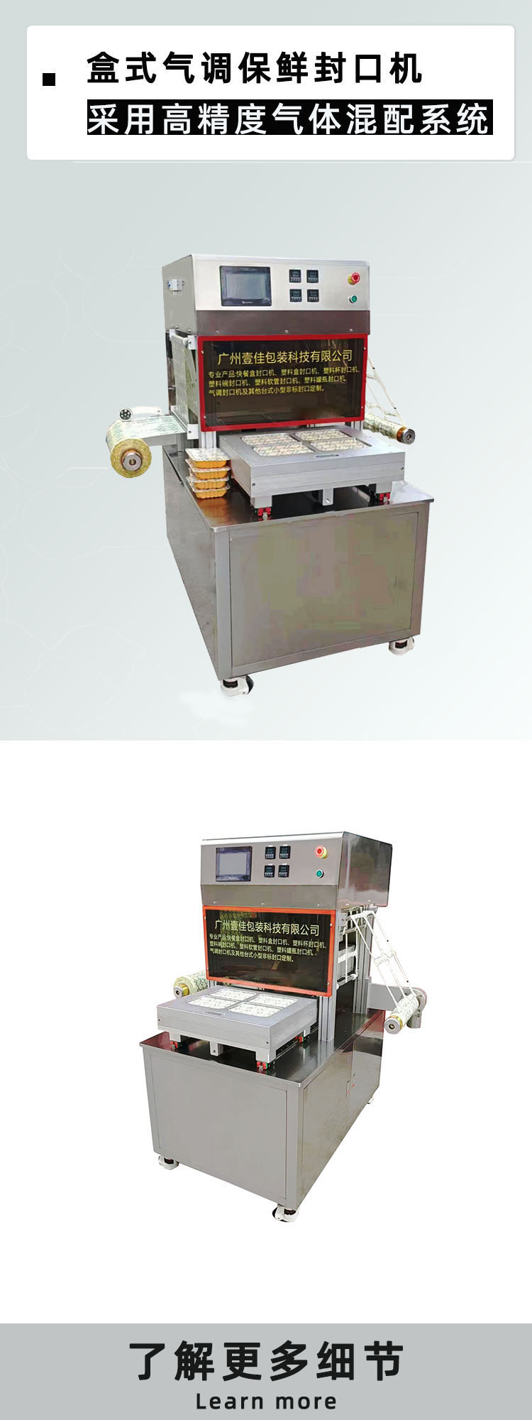 盒式氣調(diào)封口機(jī),采用高精度氣體混配系統(tǒng),可根據(jù)不同食品的保鮮需要,迅速轉(zhuǎn)換不同保鮮氣體的種類與混合比例,使所包裝的食品長(zhǎng)時(shí)間保持原有的風(fēng)味和外觀,并在較大程度上抑制各種細(xì)菌與微生物的滋生,以達(dá)到客戶需求的保鮮效果。
